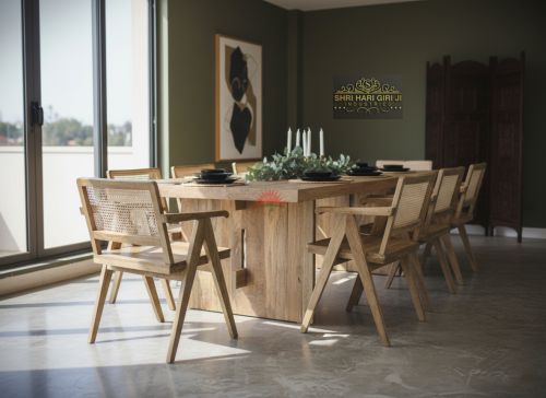 Wooden 8 Seater Dining Table Set with Chairs & Glass Top